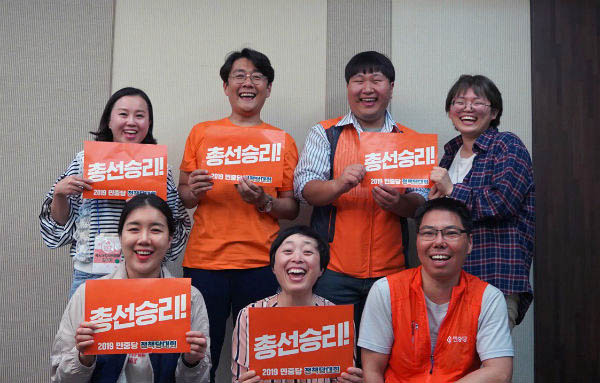 김민기 당원이 말을 받았다. “내년에 저는 죽었다고 생각하는 사람이거든요. (김종훈) 그분을 당선시키기 위해서, 한 명뿐인 국회의원을 지키기 위해서.”