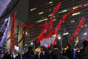 광화문 촛불 집회는 축제다예술가들의 노래와 몸짓이 광화문 촛불 집회를 축제로 만들었다. 오는 토요일 역시 축제의 장이 될 것이다. 예술은 시대를 반영한다. 가수 전인권의 애국가와 행진은 지난 19일의 촛불집회를 축약하고 상징했다. 그의 노래는 촛불을 든 시민들의 마음을 모아냈고 더욱 크게 전달했다. 예술가가 사회에서 책무를 수행하는 전형을 보였다.한편 11일 집회에서 문화 프로그램이 과다하다는 지적도 있었다. 진행 측의 행진 불가 판단에 따라 늘어난 시간들이 일부 시민에게 불편함을 주었기에 생긴 지적이었다. 충분히 이해할 수 있는