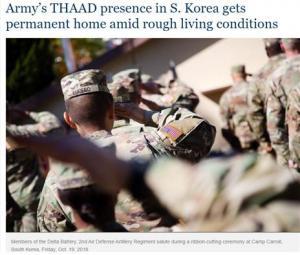 영구 배치 수순으로 가는 사드지난 10월19일 사드 배치를 공식화하는 행사가 경북 왜관에 위치한 주한미군 기지인 캠프 캐럴(CAMP CARROLL)에서 진행되었다. 사드 운영을 책임지고 있는 부대인 델타 배터리(Delta Battery) 제2방어 포병연대가 새롭게 단장한 사령부 건물의 커팅식을 가진 것이다.문제는 이 포병연대 사령관이 “오늘의 이 행사는 한반도에서 사드 부대를 공식화하는 마지막 단계”라고 발언한 점이다. 해외 주둔 미군 장성을 대상으로 하는 미 국방부 매체인 의 보도 기사 제목에