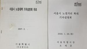 1. 청계천 복원사업 시기 노점상은 어떻게 저항했나? 청계천 변의 노점상이 가장 많이 늘어나는 계절은 추석 전후 가을 초입이다. 한때 서울시 추정 약 3천여 명이 장사했던 것으로 조사되었다. 이 가운데 노점상 단체로 조직된 상인은 약 1천여 명이었다. 그러나 이 많은 노점상이 한꺼번에 삶을 위협받는 사건이 벌어진다. 이명박 서울시장이 청계천 복원사업을 추진하는 과정에서 노점상과 지역 상인의 생존권을 심각하게 침해할 것이라는 소문은 진작부터 흘러나왔다. 그 첫 번째 징조는 2002년 한일 월드컵 경기를 앞두고 이미 서울시 전역에 단속