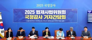 민주당을 비롯한 법제사법위원들은 “국민의힘이 의도적인 국정감사 파행으로 진실을 숨기려 한다”며 지금까지 드러난 국정감사의 성과를 보고하고 남은 2주 동안의 감사 방향을 제시했다.국정감사가 절반 정도 지난 22일 국민의힘을 제외한 법사위원들이 모였다. 이들은 지금까지 밝혀진 사법 쿠데타 의혹과 남은 과제들을 제시하면서 국민의힘이 어떻게 국감을 무력화시키려 하는지 지적했다.국민의힘이 의도적으로 국감을 파행으로 몰고 갔다는 점이 지적된다. 김용민 민주당 의원은 “식당이나 지역에서 주민들을 만나면 다들 ‘법사위 그만 좀 싸워라’ 말하신다”
