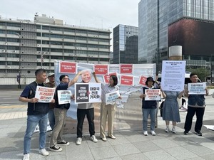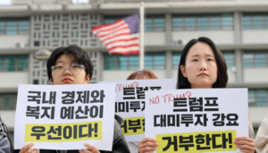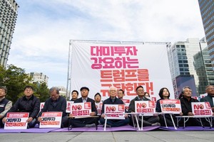 한미 양국이 한미 관세 협상과 대미 투자 협상을 타결한 가운데, 시민사회가 “트럼프의 강도적 투자 강요를 그대로 수용한 불평등 협상”이라며 강력히 반발했다.트럼프위협저지공동행동(준)은 30일 오후 서울 광화문 이순신 동상 앞에서 기자회견을 열고, “10년간 매년 200억 달러씩 미국에 현금을 갖다 바치는 것은 국가 경제를 거덜 내는 퍼주기 협상”이라고 규탄했다.“조공은 조공일 뿐”…“마피아식 강탈”박석운 트럼프위협저지공동행동 공동대표는 “어제 한미 관세 협상이 타결됐지만, 액수가 줄었을 뿐 매년 200억 달러 강탈도 마피아식 조공