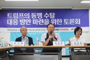 한미 관세 협상과 정상회담 이후 큰 성과라는 정부의 평가와 달리, 숨겨졌던 문제점이 속속 드러나고 있다. 자동차 관세, 대미 투자 수익금 배분, 농축산물 시장개방, 미국이 운영하는 마스가(MASGA) 프로젝트 등 경제·안보 전반에 걸친 구조적 문제가 확인되면서 자주적 대응을 모색하자는 목소리가 커지고 있다.16일 오후 3시, 트럼프위협저지공동행동(준)과 민주노총은 ‘트럼프의 동맹 수탈 대응 방안 마련을 위한 토론회’를 진행했다. 토론회에서는 △미국의 수탈로 국부가 유출되고 산업이 공동화되는 현상 △동맹 현대화라는 이름으로 진행되는