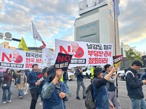트럼프 대통령의 방한에 맞춰 거센 투쟁이 경주에서 이어졌다. 29일 오후 경주 구 경주역 광장에서 열린 ‘대미투자 강요 안보위협 트럼프 규탄 NO TRUMP 시국대회’에는 트럼프위협저지공동행동(준)을 비롯한 각계 인사와 시민들이 모여, 한국 정부의 대미 투자 계획 철회를 촉구했다.트럼프위협저지공동행동은 트럼프 대통령의 방한이 3,500억 달러 규모의 대미 직접투자 협상 마무리를 위한 것이라며, 이를 ‘제2의 IMF 사태’를 초래할 수 있는 부당한 요구라고 규탄했다. 또한 “이미 80%가 넘는 국민이 트럼프의 투자 강요와 관세 협박이