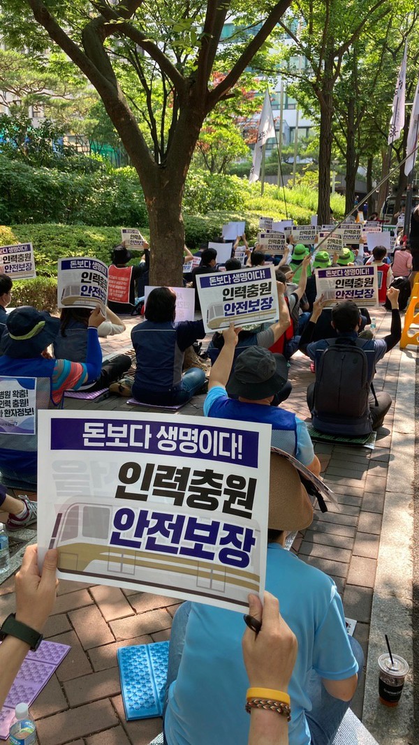 참가자들은 민간위탁이 “제한된 민간위탁비용으로 인해 운영인력이 부족해도 충원하지 못하고 고강도 노동을 낳는 등 시민의 안전과 생명을 위협하고 있다”면서 9호선 민간위탁 중단과 공영화를 촉구했다.