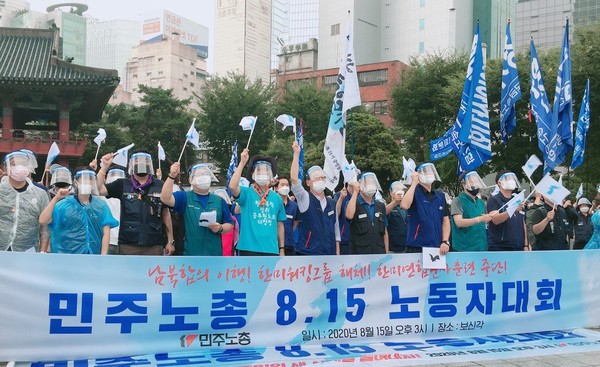 민주노총이 코로나19 확산 방지를 이유로 8.15대회 집회금지를 통보한 정부와 서울시의 방해를 뚫고 8.15노동자대회를 성사했다.