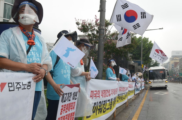 그러나 8.15를 앞두고 지난 여름 “남북합의 이행! 한미워킹그룹 해체! 한미연합군사훈련 중단!”을 촉구해 온 노동자들의 의지는 꺾이지 않았다.