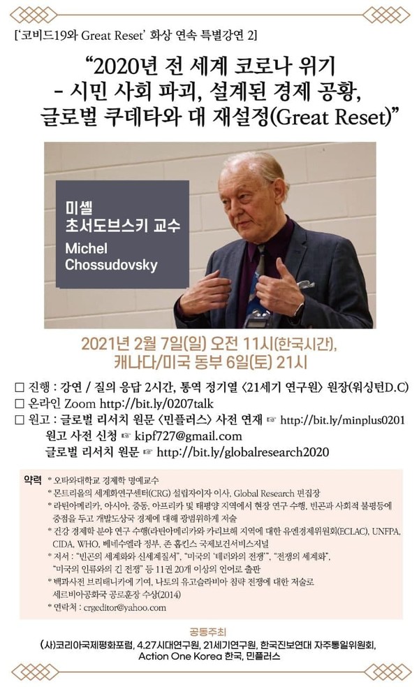 주제: 미셸 초서도브스키 교수 특별강연