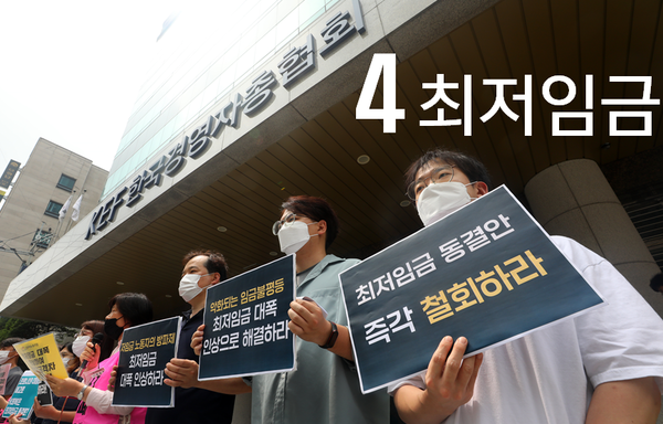그럼에도 최저임금위원회 사용자위원들은 또 내년도 최저임금 요구안으로 ‘최저임금 동결(8,720원)’을 제시했다. 결국 공익위원들이 최저임금 심의 구간을 제시하고 정부가 추천한 공익위원들의 결정으로 최저임금이 결정되는 문제를 개선하기 위해 최저임금 노동자들은 최임위가 열리는 세종시 정부청사 앞에서 연일 투쟁 중이다. “최저임금 대폭인상이 코로나19로 심화된 우리사회의 불평등·양극화를 해소하는 백신”이라며 ‘최저임금은 노동자 가구생계비로 결정해야 한다’는 저임금 노동자들의 목소리를 귀담아 듣지 않기 때문이다.