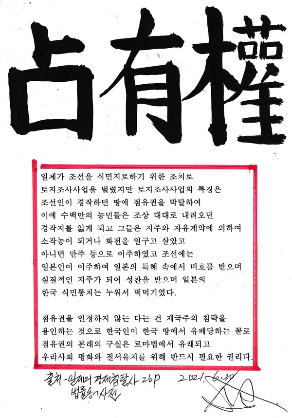 만평 관련기사 일제의 토지조사사업과 한국의 토지재조사사업 키워드 #만평 #정설교화백 정설교 화백 jsg142@hanmail.net 다른기사 보기 저작권자 © 현장언론 민플러스 무단전재 및 재배포 금지 당신만 안 본 뉴스 ‘죽고 나서 해결할 거냐’ 산재 근절 외치던 정부 왜 침묵하나 팩트 시트를 보고도 환호? 이건 집단 최면이다 일본 총리의 대만 발언, 동북아를 흔드는 이유 팩트시트, 미국을 더 위대하게 만드는 한미동맹 팩트시트, 미국이 약속한 것과 한국이 약속한 것? 쿠팡에 집중된 노동자 사망, 다른 택배사로 전염된다 팩트시트, 트럼프가 그린 한국의 대미 종속 로드맵 ‘죽고 나서 해결할 거냐’ 산재 근절 외치던 정부 왜 침묵하나 댓글삭제 삭제한 댓글은 다시 복구할 수 없습니다. 그래도 삭제하시겠습니까? 비밀번호 닫기 기사 댓글 0 댓글 접기 로그인 후 이용 가능합니다. 댓글 내용입력 비회원 로그인 이름 비밀번호 댓글 내용입력 댓글쓰기 계정을 선택하시면 로그인·계정인증을 통해 댓글을 남기실 수 있습니다. 회원 로그인 비회원 글쓰기 이름 비밀번호 자동등록방지 로그인 옵션 창닫기 주요기사 [뉴스+] 노상원 수첩, ‘한동훈 사살’ 지시…같은 내용, 여인형 휴대폰 메모에도 12·3계엄 1년, 응원봉 들고 다시 국회로…"내란·외환 세력 박멸하자" 진보당 손솔 의원, 중앙선관위 2차 정책토론회 [울산] “아직도 내란 동조 정당한가” 진보당, 김두겸 울산시장에 사과 요구 [뉴스+] 시진핑, 트럼프와 전화해 다카이치 압박…“일본 군국주의, 2차대전 전범” 윤석열 두 번째 석방 막자… 국민여론, 내란전담재판부 설치 힘 실어