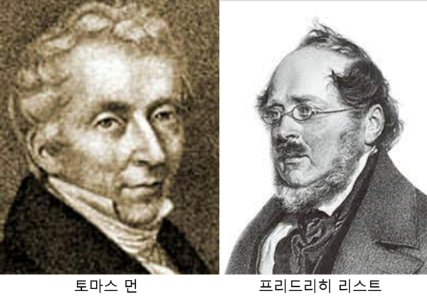 영국의 토마스 먼도 대외무역은 국가의 재부와 현금을 증가시키는 통상의 수단이기 때문에, 가치적으로 볼 때 외국인에게 매년 파는 제품은 필히 영국이 그들의 것을 소비하는 것보다 많아야 한다고 강조했다. 이를 위해 국가는 마땅히 무역 순차를 실현하는데 유리한 모든 정책을 실시할 것과, 황무지 개척을 장려함으로써 현재 수입에 의존하는 상품수량을 증가시켜야 한다는 점을 역설하였다.