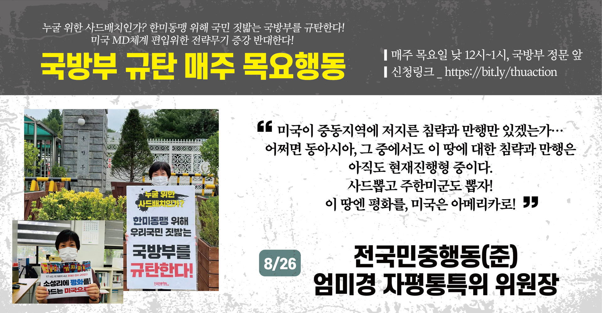 ▶ 일인시위, 매주 목요일 낮 12시~1시, 국방부 정문 앞