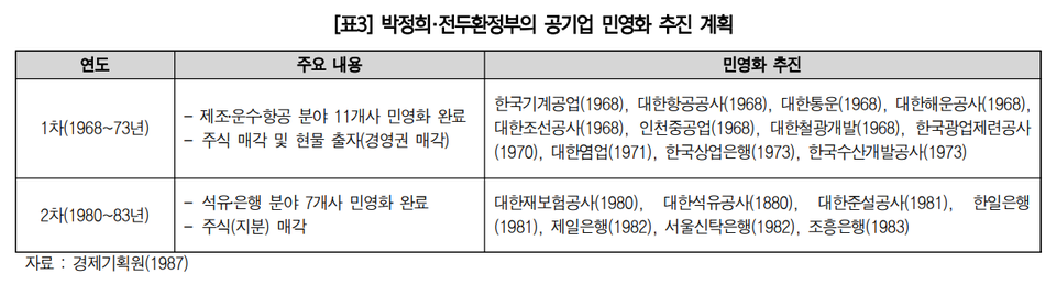 경제기획원(1987), ‘공기업 민영화 및 경영개선 추진계획’