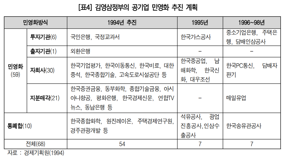 경제기획원(1994), ‘공기업 민영화 추진계획’