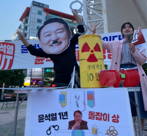 “우리는 대통령을 뽑았지 바보를 뽑지 않았고, 일본 영업사원을 뽑지 않았고 미국 행동대장을 뽑지 않았다”, “필요할 때만 청년 찾는 윤석열, ‘미래를 위해 만행을 저질렀다’는 어이없는 변명하지 말고 국민들 그만 부끄럽게 하고, 대한민국의 미래를 위해 더 이상 만행을 멈춰라”고 외쳤다.