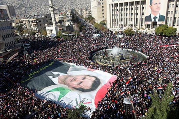 주류 미디어는 아사드가 얼마나 인기가 있는지 보여주지 않는다. 전쟁 선전의 제1 규칙은 적을 악마화하는 것이다. 2009년과 2010년에 실시된 CNN 및 조그비 여론조사에서 아사드는 가장 인기 있는 아랍 지도자로 선정되었다. 아사드 정부 첫 10년(2000 – 2010)에 시리아의 GDP는 3배가 되었고, 국가는 안전하고 평화로웠다.