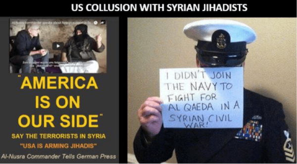 2012년 펜타곤 메모가 경고했듯이 미국은 무슬림형제단, 알 카에다, ISIS와 같은 악당을 지지해왔다. 그것은 대부분의 미국인들이 받아들일 수 없는 어려운 진실이다. 그들을 "온건 반군"이라 부르는 것은 미국 대중에게 재앙적인 정책을 팔기 위한 모호한 표현이다. 미국은 기본적으로 1980년대 아프가니스탄의 무자헤딘에 한 일(지원)을 시리아 반군에 했다.