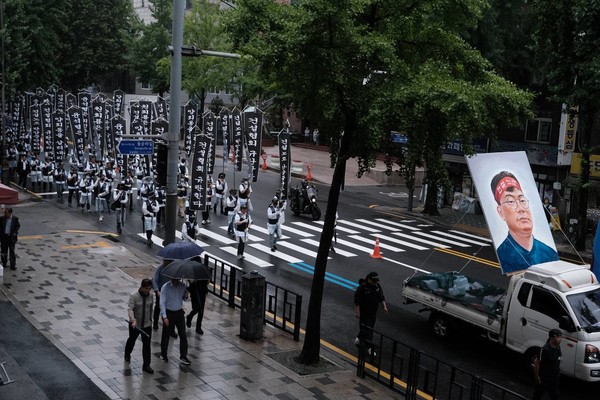 21일 오전 9시 서울대병원장례식장에서 발인을 마친 ‘양회동 열사 노동시민사회장’ 행렬은 노제를 지내기 위해 경찰청으로 향했다.