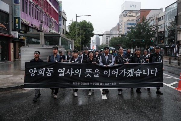 비가 내렸다. 비가 오면 건설노동자는 출근하지 않는다. 영원한 건설노동자 양회동 열사가 마지막으로 건설노동자 한 사람이라도 더 보고 싶었던 모양이다.