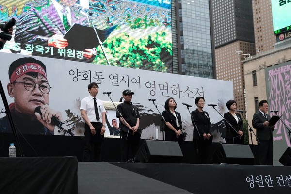 양회동 열사를 마지막 떠나보내는 영결식이 21일 오후 1시 세종대로에서 열렸다.