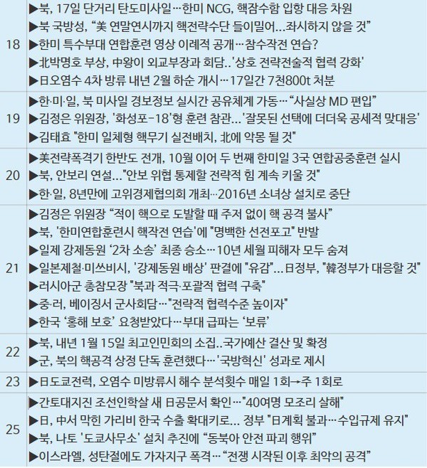 매주 월요일 <한반도 주간 브리핑>으로 독자 여러분을 찾아갑니다. 한 주간의 소식을 "주간일지 / 주요 뉴스 / 주간민플뉴스"로 담았습니다.