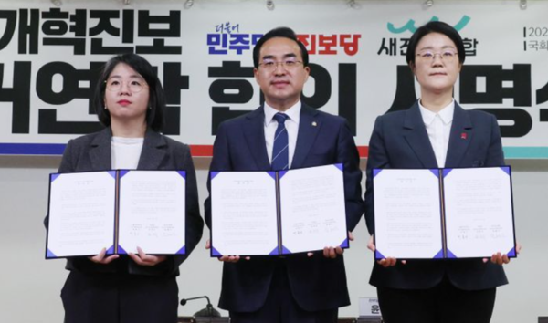 더불어민주당과 진보당, 새진보연합이 비례정당인 ‘민주개혁진보연합(가칭)’ 창당에 합의했다.