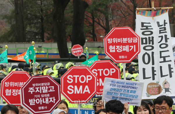 이러한 경제적 어려움과 함께 냉전의 지속으로 인해 미국은 동맹국들의 방위비 부담을 늘리려 했고, 그 결과가 바로 SMA 체결로 이어졌다. 그러나 이 협정은 SOFA와 충돌하는 성격을 지니고 있다. SOFA에서 미국이 부담하기로 한 비용을 한국이 대신 부담하게 만든 것이다. 이 과정에서 한국 정부는 미국의 압박을 수용할 수밖에 없었다.