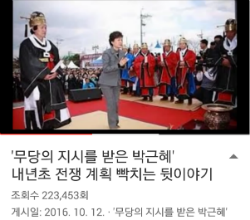 President Park participating in a shaman ritual. (Translation: Park Geun-hye plans to start war early next year following the order of shaman) [image : YouTube capture]
