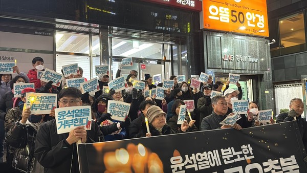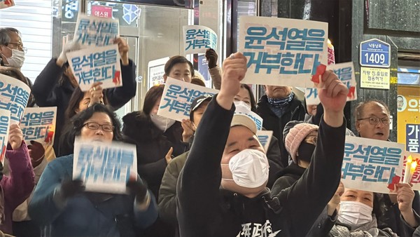 춥고 궂은 날씨에도 불구하고 참가자들은 "윤석열 퇴진에 추위가 대수냐! 하루빨리 끌어내리자!"며 목소리를 높이며 분위기를 끌어올렸다.