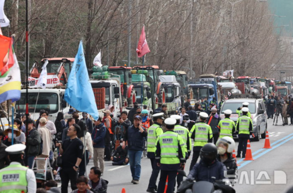 "경찰에 경고한다. 트랙터행진 보장하라."