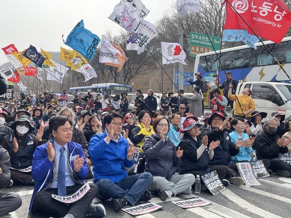 비상행동 공동의장단과 각 정당 대표, 국회의원들도 참석해 트랙터 행진에 힘을 보탰다.