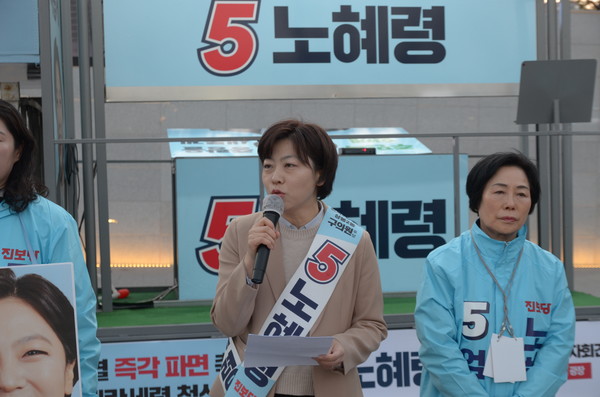 노혜령 후보는 "12월 3일 불법 계엄 선포 이후 110일이 넘었다. 국민들은 윤석열이 망가뜨리려 한 민주주의를 지키기 위해 눈물과 땀을 흘렸다. 그러나 여전히 윤석열이 거짓과 술수를 동원해 살아남으려 하고 있으며, 헌법재판소도 이를 방관하고 있다"고 비판했다.
