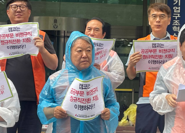 캠코(한국자산관리공사) 자회사로의 전환을 앞둔 서대문세무서와 중부세무서의 용역 노동자들이 “정규직 전환이 아니라 퇴출 통보다”며 강하게 반발하고 나섰다. 공공연대노동조합은 7월 14일 캠코 양재타워 앞에서 결의대회를 열고 “정부지침에 따라 전원 고용승계를 약속하고도 캠코시설관리는 채용을 제한하고, 인원을 감축하며 사실상 고령자를 배제하는 방식으로 노동자들을 길거리로 내몰고 있다”고 비판했다.