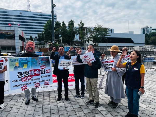 시민사회도 비판의 목소리를 높이고 있다. 23일 국방부 앞에서 자주통일평화연대와 전국민중행동은 기자회견을 열고 “동맹 현대화는 자주가 아닌 종속을 심화시키는 것”이라며 “한국을 미국의 전쟁터 앞잡이로 내세우는 위험한 구상”이라고 지적했다. 민주노총, 민주노점상연합, 불교계 단체 등도 함께 참여해 국방비 증액과 한미일 군사협력 강화에 반대하는 입장을 밝혔다. 특히 “민생을 희생시키는 국방비 증액으로는 평화를 살 수 없다”고 절박하게 호소했다.