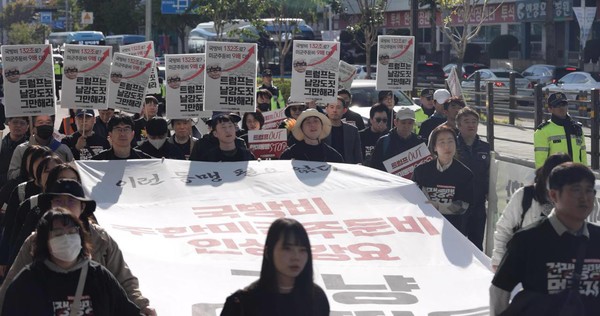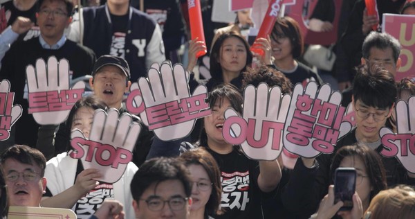 행진에서는 트럼프의 수탈과 대미 굴욕 협상에 분노한 참가자들이 각자의 방식으로 분노를 드러냈다.
