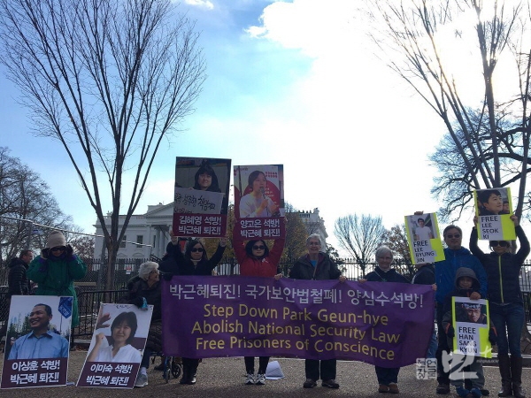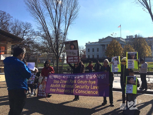 국가보안법 제정(1948년 12월 1일) 68년을 맞아 미 백악관 앞에서 재미 동포단체 및 현지 진보, 종교단체들이 모여 국가보안법 폐지 및 양심수 석방을 촉구했다.
