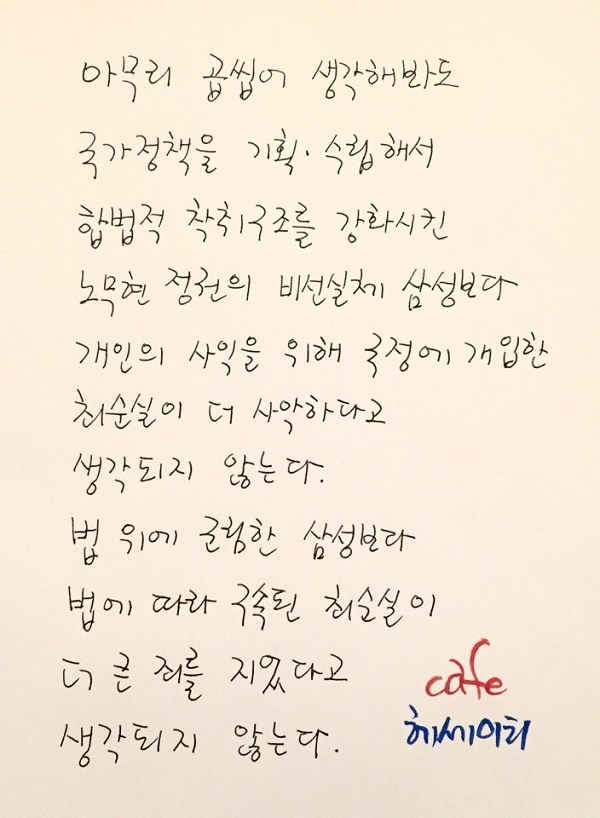 그러니까 죄를 저질러도 조직을 만들어 저지르면 가중처벌을 받게 만든 법이다. 폭력이더라도 조직폭력은 더 큰 벌을 받는데 왜 삼성이라는 범죄단체는 죄를 저지르고도 여전히 강고하게 살아남아 있는가? 살아남아 있을 뿐만 아니라 법 위에서 군림하고 있는가?