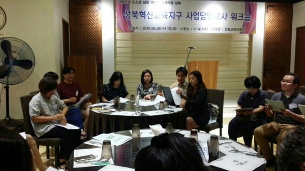 2016 성북혁신교육 사업별 담당교사 워크숍에서 만난 선생님은 서울형혁신교육지구사업에 대한 이야기를 풀어놓았습니다. 성북혁신교육 담당교사 워크숍은 교사들과 구청 공무원들과 마을사람들이 만나서 혁신교육지구운영에 대해 점검하고 더 좋은 운영방안을 마련하는 자리입니다.