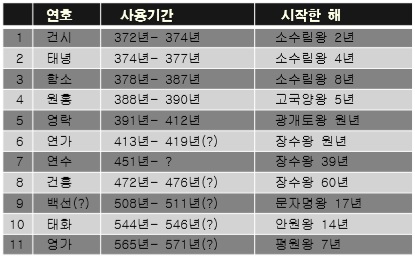 소수림왕이 황제 칭호를 채택했다는 주요 근거 중의 하나는 독자적 연호를 제정 실시한 것이다. 소수림왕은 자신의 통치 시기 초기(율령 반포 직후로 판단됨)에 자기의 독자적 연호를 사용하기 시작했다. 황해도 신천군 복우리에서 나온 벽돌에는 ‘건시 원년 한씨 조전’이라는 새김글이 발견됐다. 중국에서도 전한 성제 때인 기원전 32~29년 사이에 ‘건시’라는 연호를 쓴 일이 있다. 하지만 당시에는 벽돌에 연호를 새기는 풍습 자체가 없었다. 한반도 서북지역에서 발견된 기년명이 있는 벽돌들은 대부분 2세기말엽 이후의 것이다. 그러므로 이 연호는 370년대 초에 고구려가 처음으로 연호를 제정 실시한다는 뜻에서 쓴 연호일 것이다. 고국원왕 통치 시기만 해도 독자적 연호를 사용하지 않았고 중국의 동진, 후조의 연호를 빌려 쓰고 있었다. 이는 무덤 묵서나 벽돌유물들을 통해 알 수 있다. 374년 이후에는 ‘태녕’이라는 연호를 썼다. 근년에 집안에서 나온 기와막새에 ‘태녕 4년 태세□□ 윤월 6일 기사’라는 새김글이 나왔다. 일부 사람들은 이 연호를 동진의 연호라고 주장한다. 동진의 태녕 3년(325년)에도 ‘윤 8월6일 기사일’이 있으니, 햇수를 잘못 쓴 것이라고 우기고 있다. 그러나 三을 四로 잘못 새긴다는 것을 있을 수 없다. 그러므로 이 ‘태녕 4년 윤월 6일’ 기사는 377년(소수림왕 7년) ‘윤 3월6일 기사’로 보아야 하며, 그 첫해는 374년이다. 따라서 건시 연호는 고구려가 황제 칭호를 정식으로 사용하기 시작한 372년부터 374년까지 햇수로 3년간 사용됐다고 봐야 할 것이다.