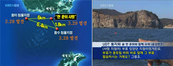 고 한주호 준위와 UDT 동기인 이헌규씨는 ‘제3의 부표’는 한주호 준위가 어군탐지기로 찾아 부표를 설치한 것이라고 증언합니다.