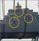 * 천안함 좌현 선실의 모든 햇치들은 180도 젖혀지는 사각 대형 햇치임