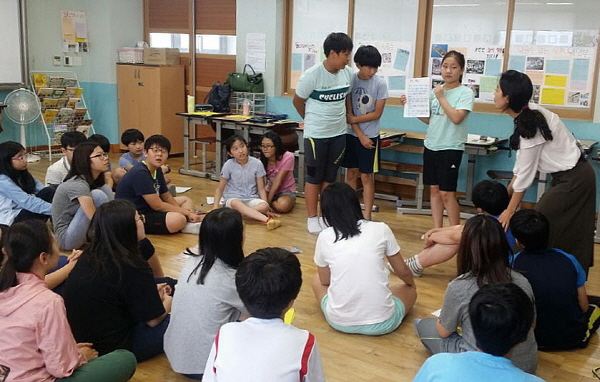 모둠별 발표가 끝나고 교사와 학생은 박수를 치면서 서로를 격려했습니다.