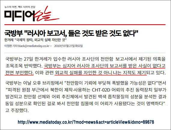 그러나, 국방부는 “러시아發 천안함 의혹은 사실무근”이라며 전면 부인합니다.