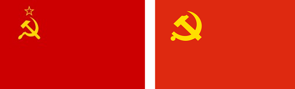 한 나라의 정책은 그 나라의 깃발에 상징적으로 표현되어 있다. 소비에트 연방, 중국공산당의 깃발과 조선민주주의인민공화국 로동당의 깃발을 살펴보자.