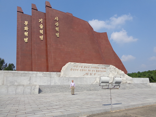2012년 평양방문 때에 국제상품전람회장 입구에서 보니 3대혁명 붉은 깃발이 파란 하늘에 빗기어 저 멀리서 나부끼는 것이 아닌가. 호기심과 반가움으로 그 깃발 앞으로 먼저 갔다.