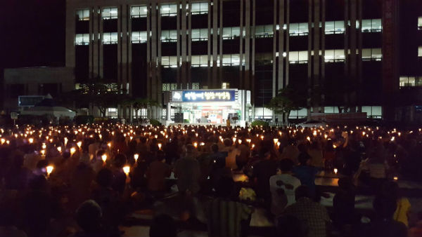 Jeon continued about the night on the 29th. Around 8 in the evening, the front yard of the County Hall was again filled with the residents holding candles in their hands.